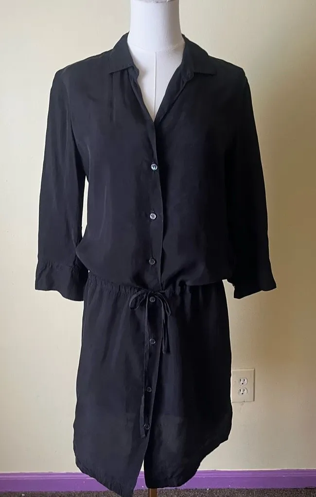 James Perse Black Button Front Shirt Dress with Drawstring Waist Size 1 (Small) Made in USA 100% cu... Show more