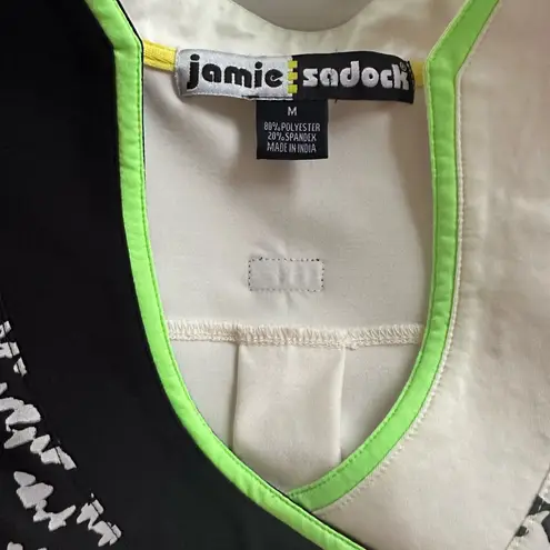 Jamie Sadock Golf Shirt Sleeveless Side Zip Black Cream Print Neon Trim Athletic Size M - $24 - From Audra