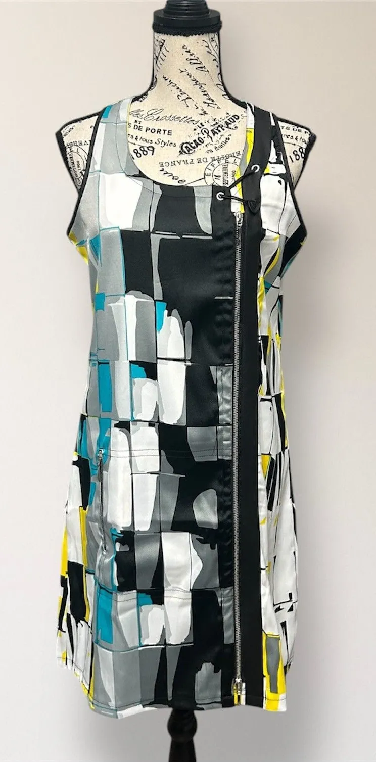 Make a statement on the course or the street in this Jamie Sadock sleeveless golf dress. Designed with a bold abstract print, front zip detail, and functional pockets, this performance stretch dress blends sporty comfort with avant-garde style. Brand new with tags. Occasion: Golf course, Tennis club, Country club, Resort wear, Athleisure outings, Vacation, Casual summer days Measurements Flat (approx.): Underarm to Underarm: 18" Shoulder to Hem: 35" Material: 97% Polyester, 3% Spandex Accents: Abstract Print, Zip Front Closure, Functional Zip Pockets, Stretch Fabric, Sleeveless Cut Features: * Brand new with original tags (MSRP $130) * Sleeveless silhouette for warm-weather play * Bold abstract print in jet black, gray, yellow, and teal * Zip-front design for adjustable styling * Functional zip pockets for on-the-go essentials * Stretch performance fabric for comfort and movement * Lightweight and breathable feel Condition: Pre-owned. Excellent Used Condition! No holes or stains! All items are stored in a smoke-free, pet-free, climate-controlled environment. Please compare the above measurements with a similar item you own to ensure a perfect fit. Message us with any questions. We're happy to help!