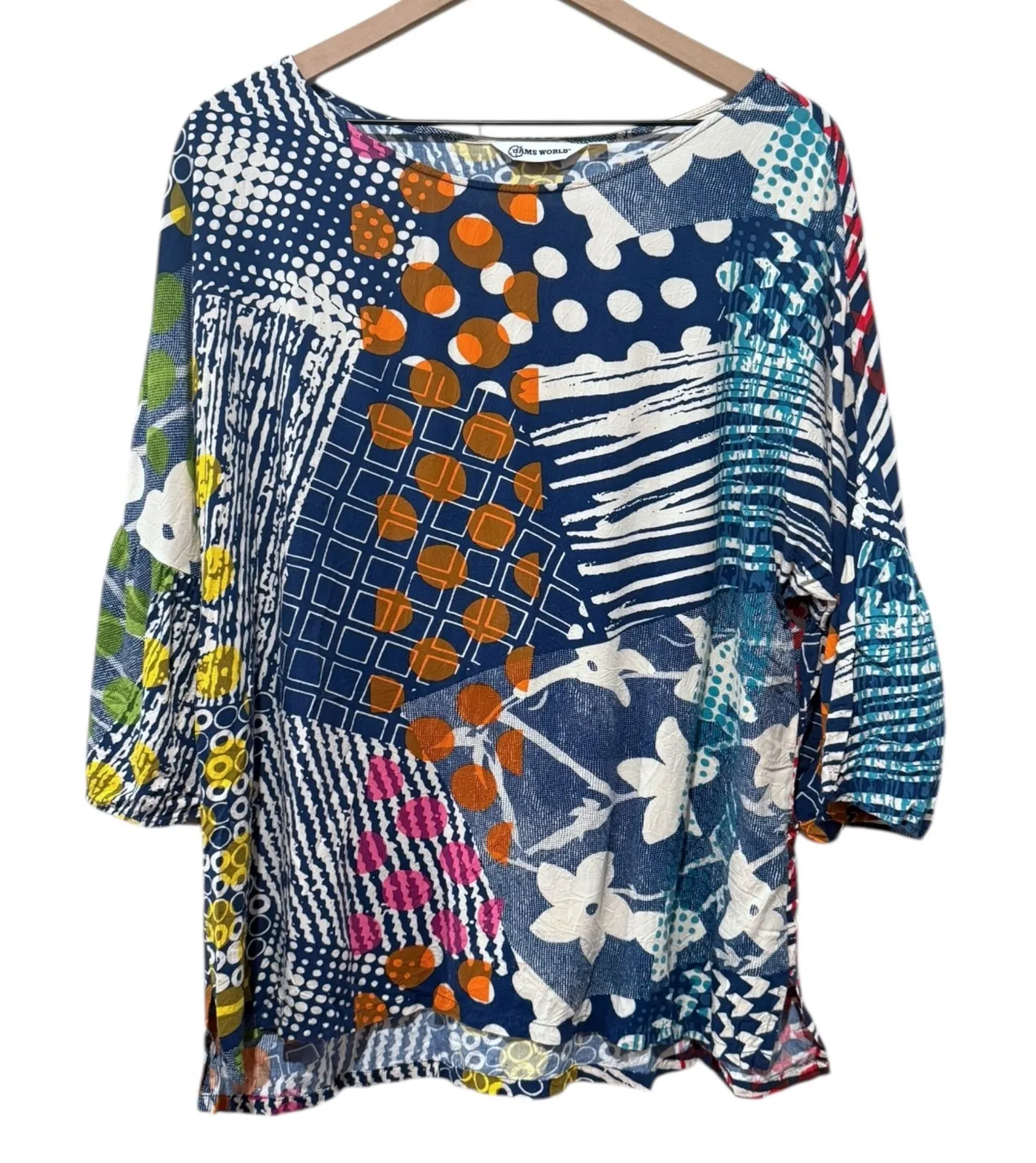 Jams World Top Women Sz L Patchwork Floral Abstract Colorful Artsy Hawaii USA Blue Size L - $34 - From McKinley