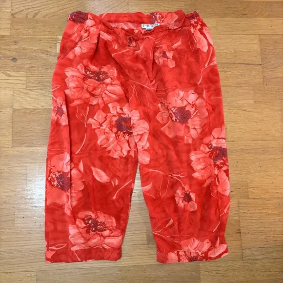 Jams World Vintage Full Bloom Floral Resortwear Vacation Coastal Capri Pants XL Red - $38 - From Rachel