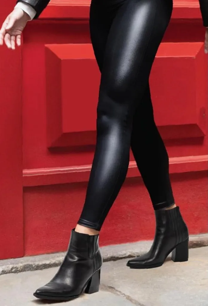 Size Medium FAUX LEATHER THAT FLATTERS: Luxe, faux leather fabric that lifts and contours to all body shapes. Velvety socks pair perfectly back with leggings. COMFORTABLE FIT: This sleek, form-fitting, flexible and breathable fabric allows for extra comfort in your movements from day to night. Provides maximum support for various activities. Unbelievably super soft infused aloe socks work on moisturizing and repairing and the argan oil works on moisturizing and conditioning your feet. HIGH RISE FIT: A smoothing, wide waistband offers core compression and tummy control. These leggings are designed to be slimming and flattering on any figure. SEAMLESS FRONT RISE: Reinforced seams for ultimate stretch. Allows for the ability to move freely without restrictions. VERSATILITY: Wear these trendy and chic leggings for any occasion. Pairs well with sneakers and heels!