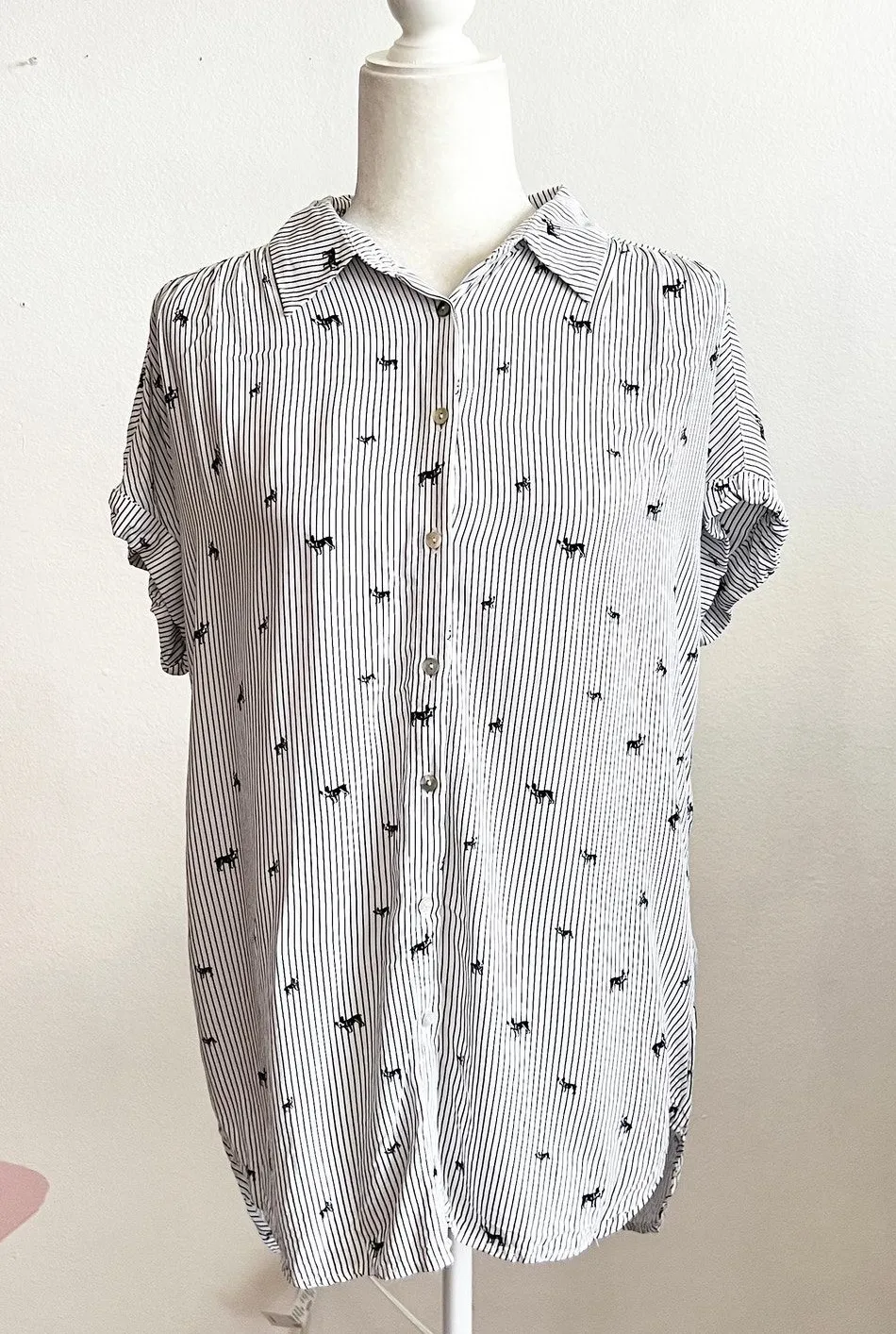 Jane and Delancey French Bulldog Button Up Top Whimsical‎ Dog Lover Large White - $25 - From Kenia