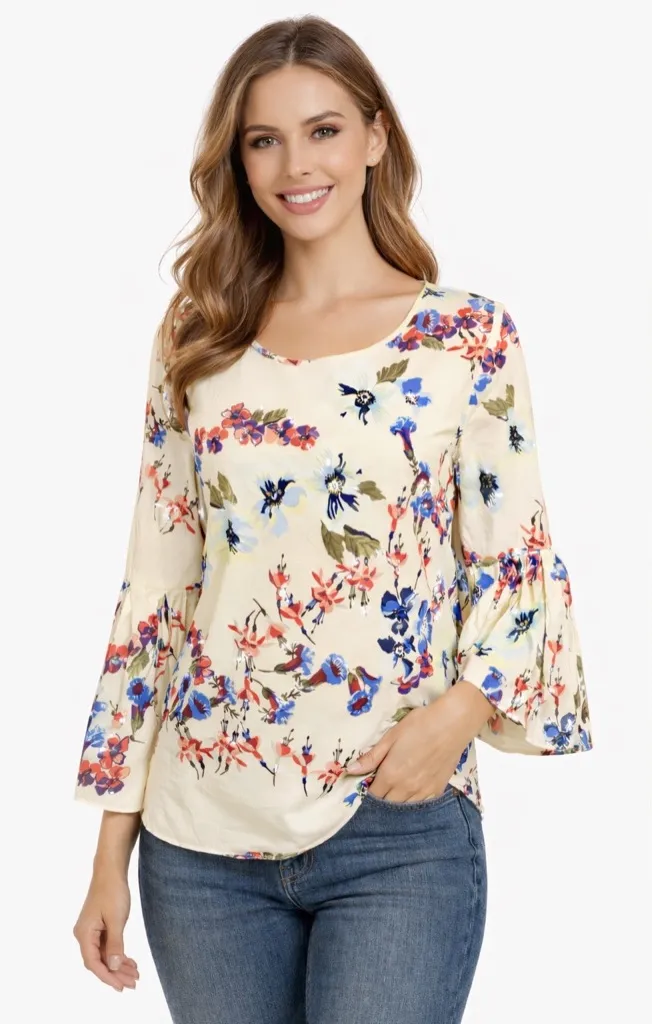 Underarm to underarm 18 so 36 around Darted Shoulder to bottom 23 1/2 Soft and feminine Jane & Delancey floral blouse in a light yellow-toned cream base with multicolor floral print. Features a flattering scoop neckline and flowy bell sleeves for an effortless boho look. Lightweight and easy to style with denim or skirts—perfect for spring, brunch, or casual days. Gently worn, great condition. See photos for true color and details Jane and Delancey, floral top, boho blouse, bell sleeve top, cream blouse, romantic top, feminine blouse, spring top, casual chic, festival style, cottagecore, flowy top, womens blouse B18