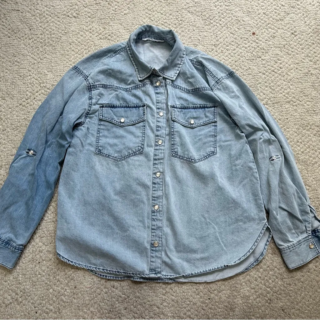 Jane & Delancey Pearl Snap Denim Shirt Women Size Small High-low Roll Up Sleeve Blue - $15 - From Dixie