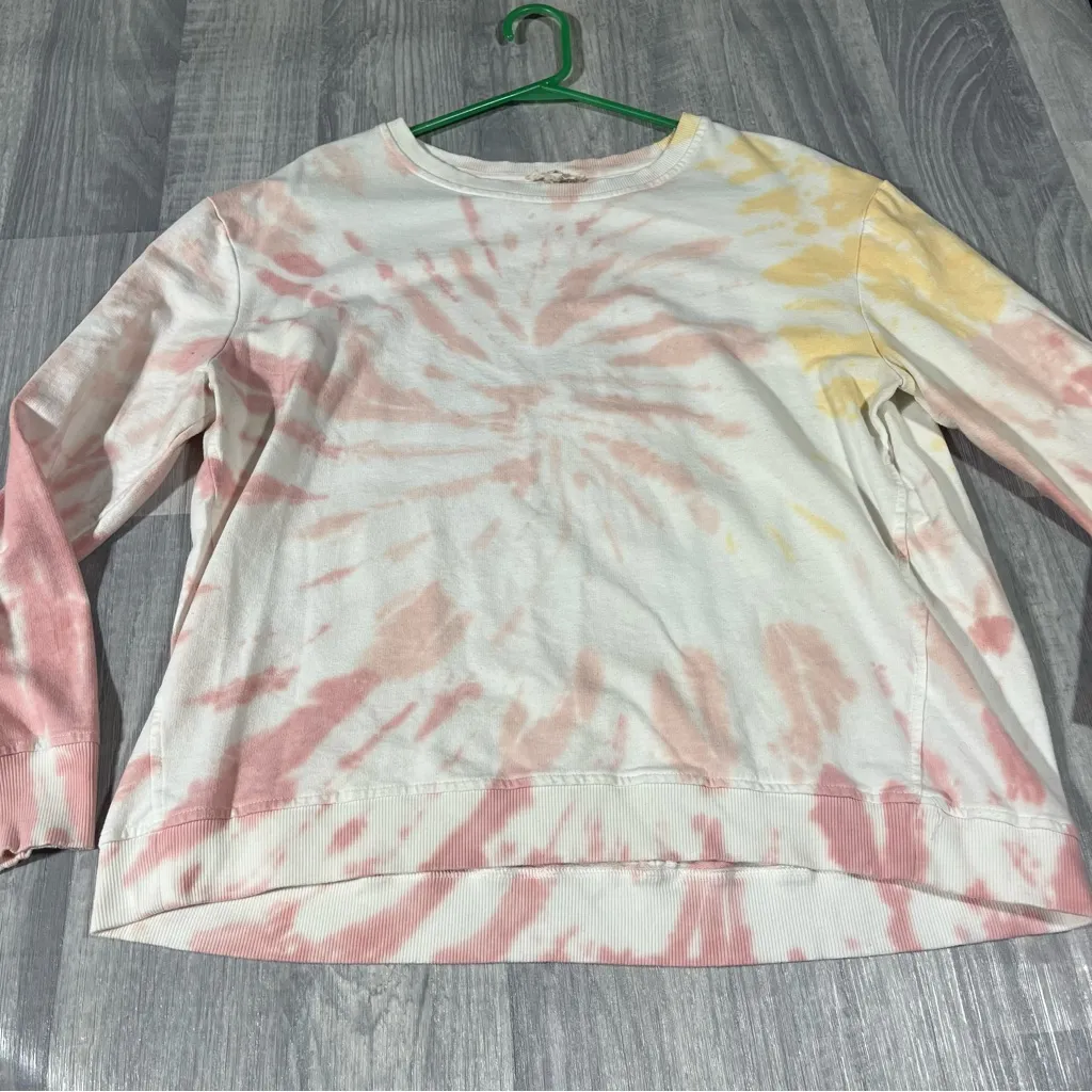 Stylish tie-dye long sleeve shirt with pink and yellow patterns. Perfect for casual wear. Jane & Delancey Pink, Peach, White Tie-Dye Long Sleeve Shirt Size: XL Women’s Pit to Pit: approximately 22 inches Shoulder to Bottom: approximately 26.5 inches No rips or stains Smoke Free Home Pet Friendly Home Tote: