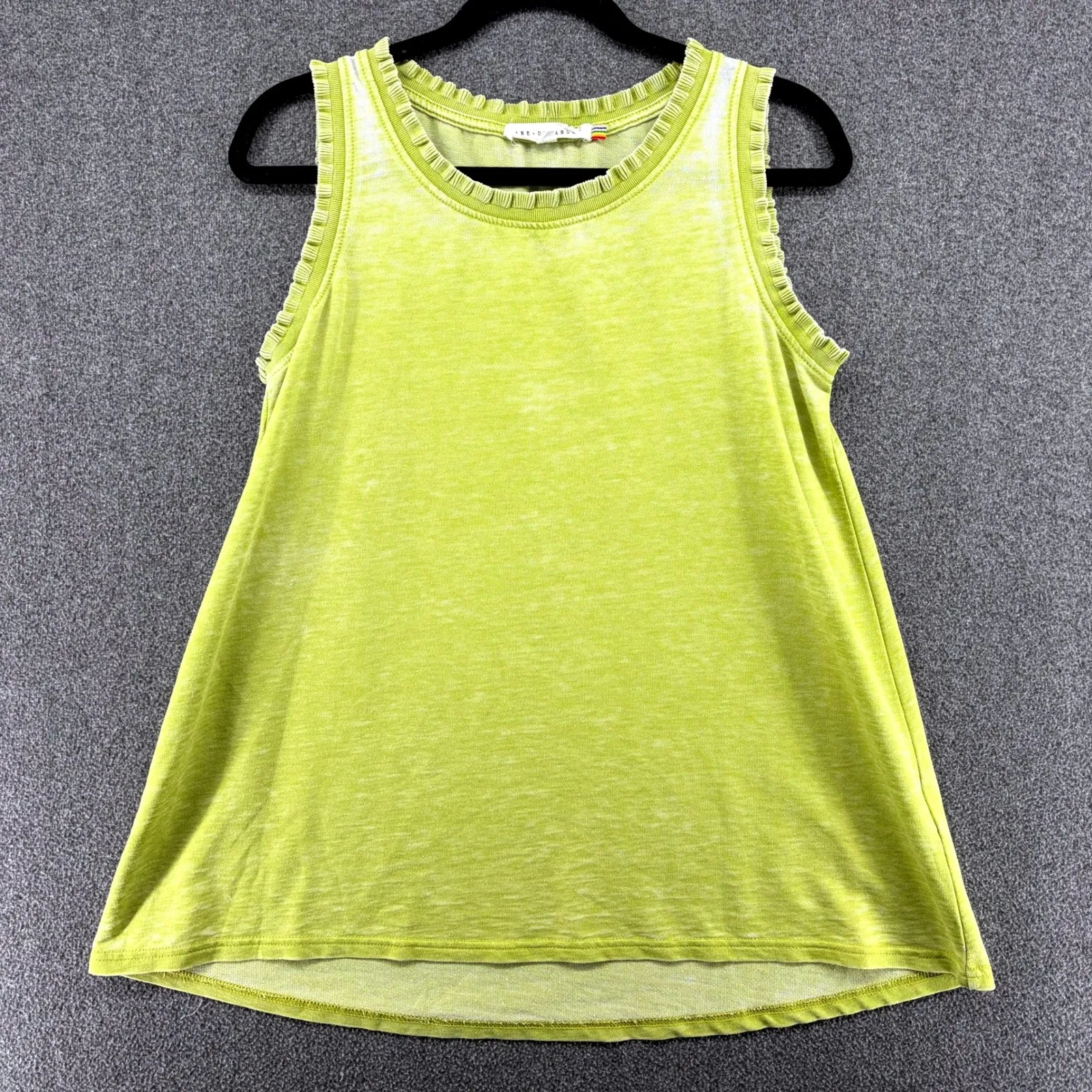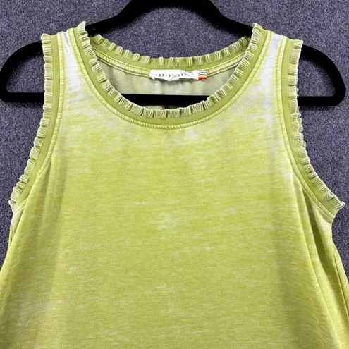 * Condition: Great pre-loved condition- free of holes, stains, tears- see photos for all details * Size: Small * Color: Lime Green * Approx. Flat Measurements: P2P- 19" , Length- 26.5" Digital model or mannequin photo may be used for styling purposes only. Keywords: tie dye, ruffle, sleeveless, tank top, lime green, casual, basic, summer, lightweight, distressed, unique, knit, burnout