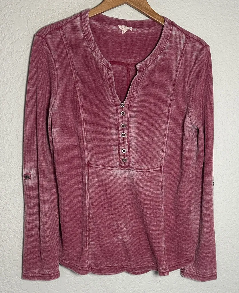 Jane and Delancey Mauve Pink Long Sleeve Thermal Waffle Top Size large Cotton bled Garment dyed s... Show more