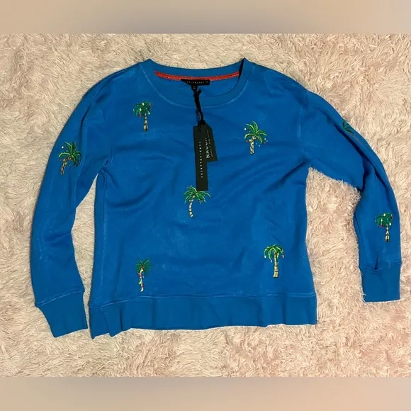 NWT Oversized Blue Jane + Delancey Light Palm Tree Long Sleeve Shirt Sweater Size XS - $26 - From peachy