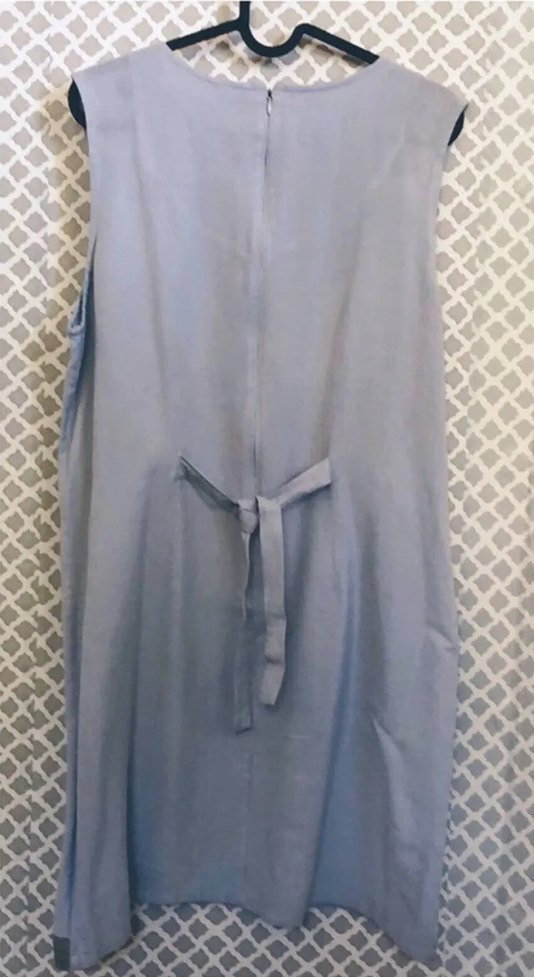 Jane Ashley powder blue linen dress w/‎ gold trim Size L - $26 - From Diana