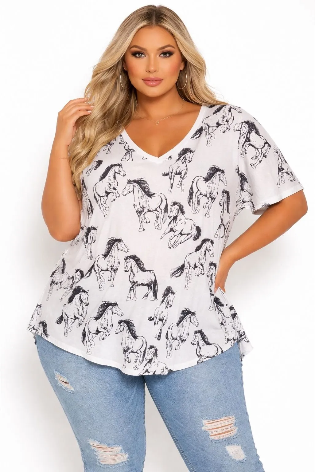 JANE + DELANCEY White Wild Horses Print V Neck Tunic Top Women's NWT Measurements Laying Flat!! Size - 2X Armpit to Armpit - 25" Length - 26" All items from a pet and Smoke Free Home Sellers Note • 126-E Keywords: horse graphic, equestrian, animal print, casual top, plus size, tunic shirt, v neck tee, relaxed fit, statement top, unique print, country style, western wear We offer reduced combined shipping! Bundle to save! *All Items have been cleaned/ steamed.