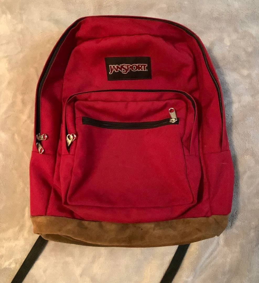 Jansport red/maroon backpack. Solid bottom for support. One large pocket with laptop pocket inside,... Show more