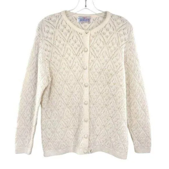 Vintage Women’s Jantzen 1960s Ivory Loose Knit Pointelle Acrylic Crochet Cardigan Sweater Size 42, w... Show more