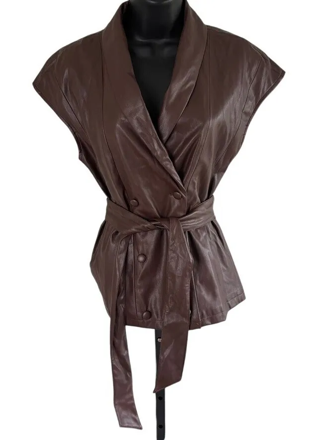 Jason Wu Faux Leather Double Breasted Vest Sz XS Brown Vegan Chic Sophisticated - $75 - From Jessica