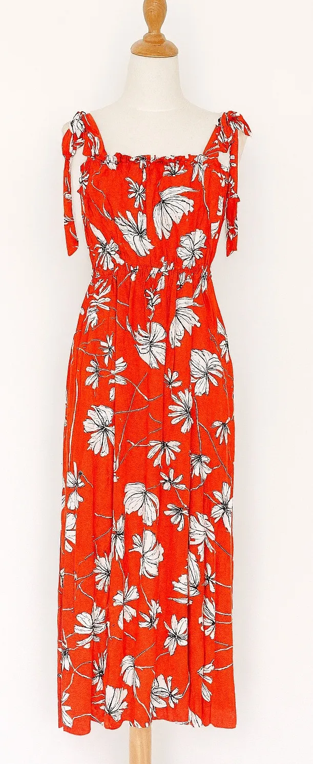 A perfect pick for summer vacations, date nights, or beach dinners. Pair with strappy sandals and a sunhat for an effortless, bold look. Floral, resort, vacation, feminine, romantic, tropical, sundress, summer, lightweight, boho Condition: Excellent condition. No visible flaws. See all photos for details. Approx. Measurements (taken flat lay): Length: 48.5" Pit to Pit: 17.5" Waist: 14.5" Ships next day Bundle deals available – just ask! Only 1 in stock – don't sleep!