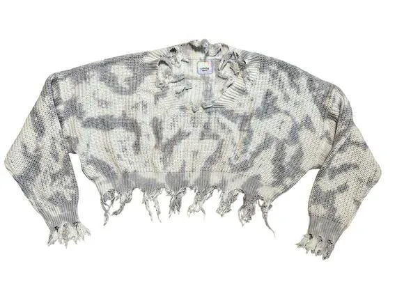 Frayed Cropped Knit Sweater Gray and White Distressed Washedup Apparel Size Small Acrylic, cotton,... Show more