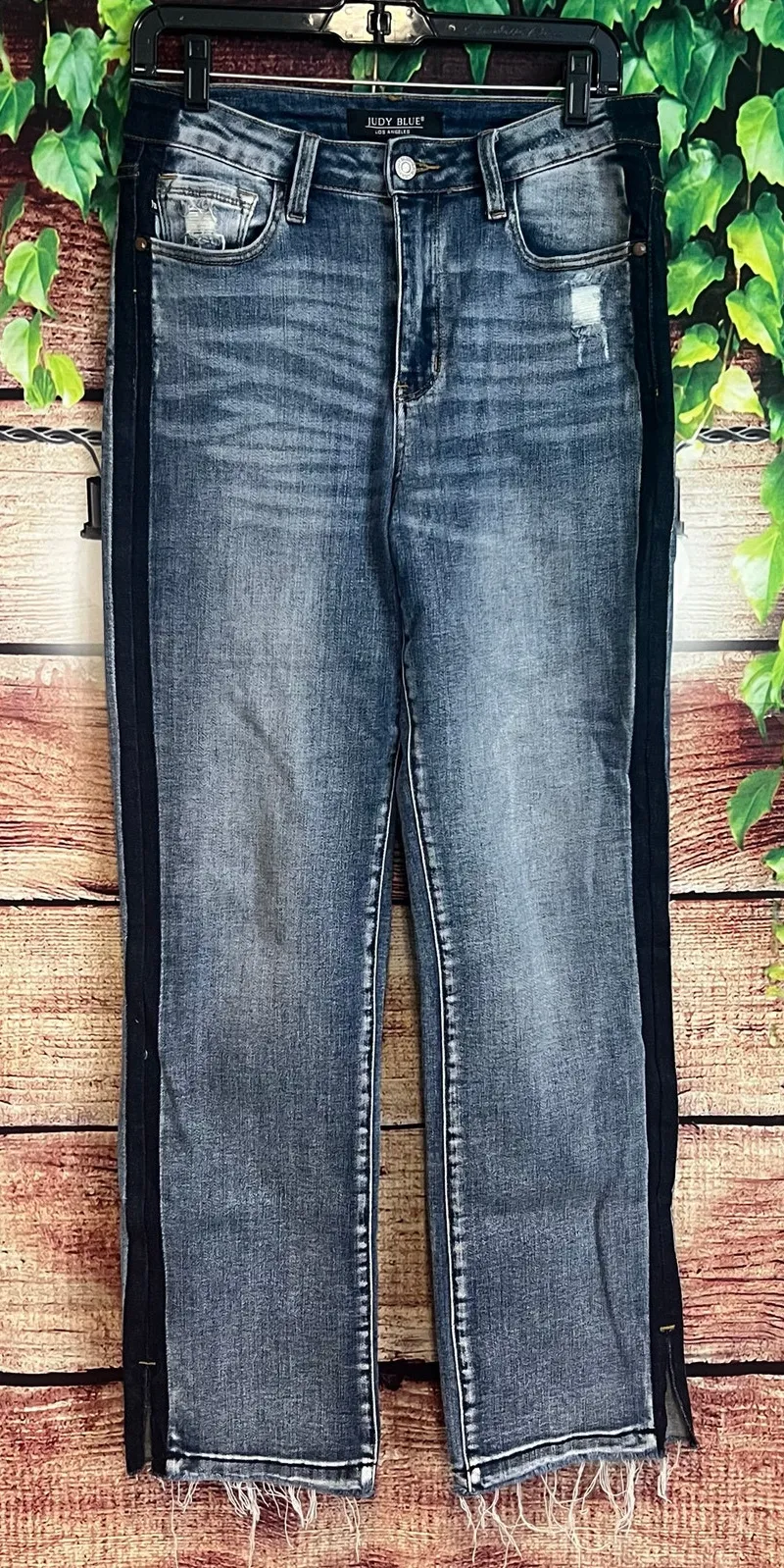 Judy Blue Jeans Women 7/28 (29x30) Blue Stripe High Rise Straight Leg Raw Hem - $35 (52% Off Retail) - From EcoChic