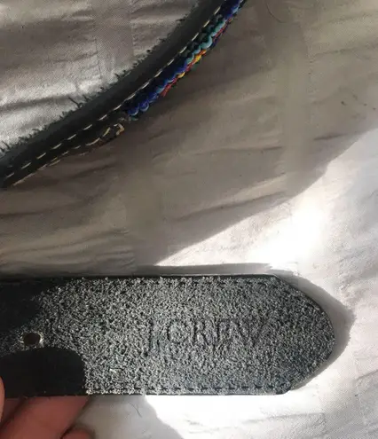 Black leather belt with multicolored beading. Only flaw is some wear as seen in pictures (specifical... Show more