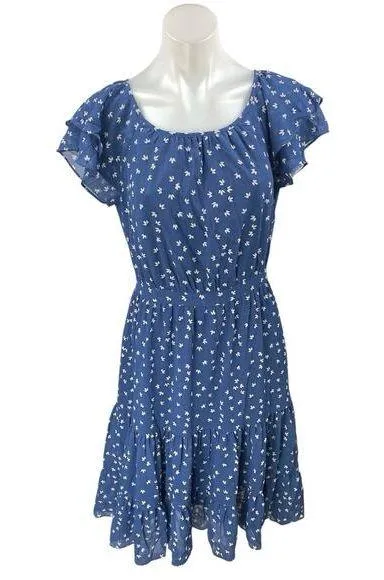 J.Crew Blue Floral Short Flutter Sleeve Ruffle Tiered Zip Midi A Line Dress Size 4 Size: 4 Conditio... Show more