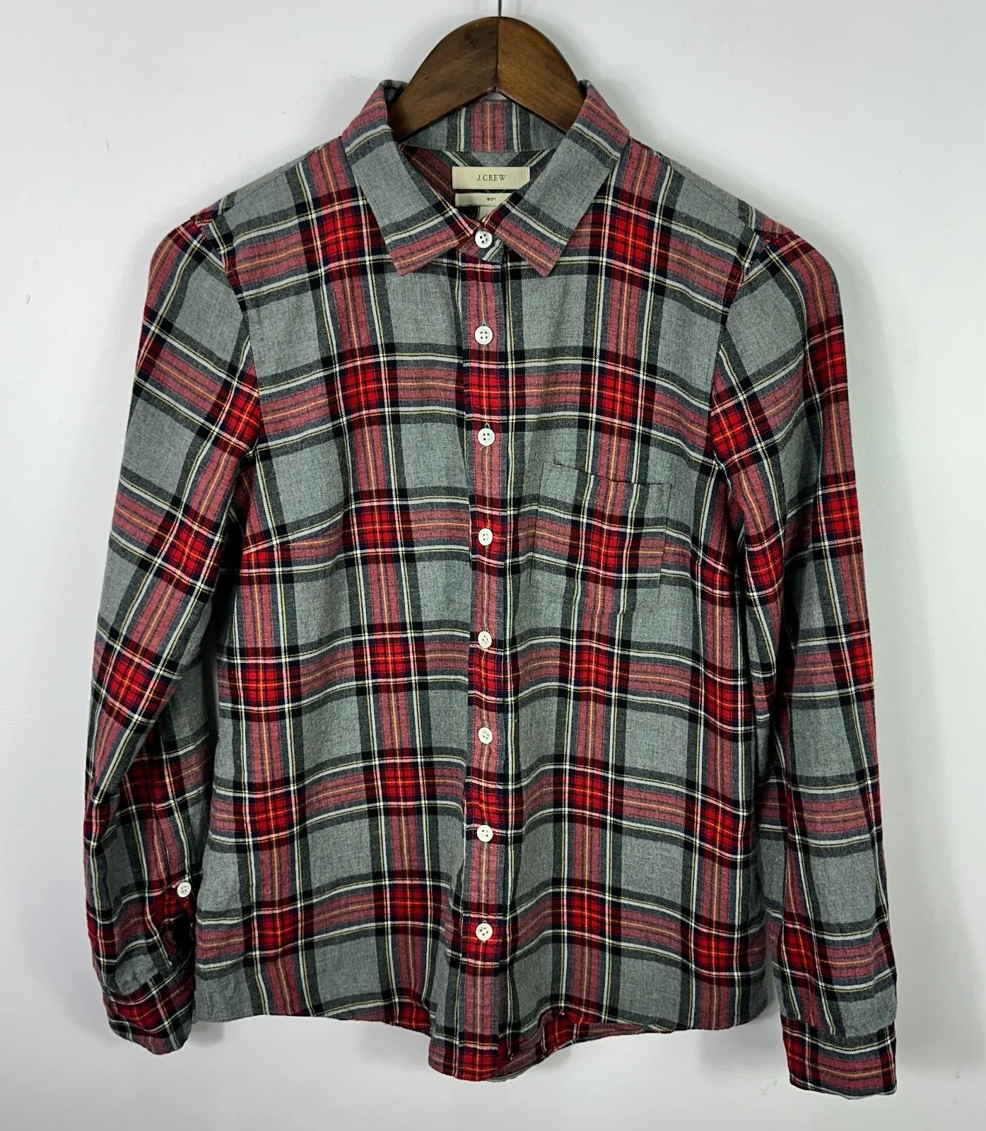 J.Crew Boy Shirt Women 4 Red Gray Plaid Cotton Relaxed Boyfriend Fit Minimalist 90s Step into timele... Show more
