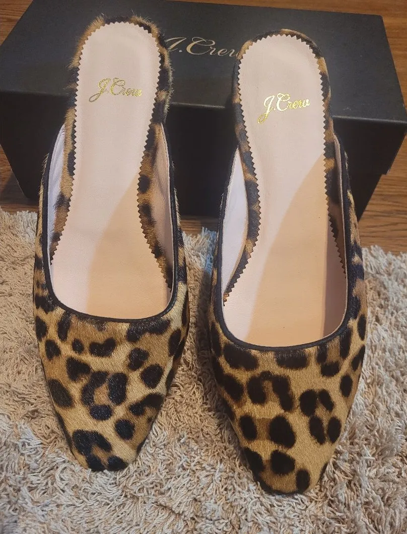 J.Crew Carolyn Leopard Print Calf Hair Flat Mules - Size 7 1/2 Original price $168 Description: El... Show more