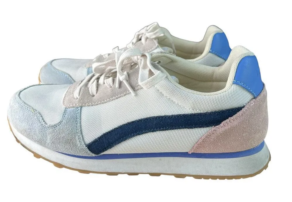 J.Crew City Sneakers in Light Blue Pink and Navy, Size 10 Features: Leather upper. Poly lining. Pol... Show more