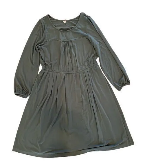 Excellent Used condition. J. Crew Deep Jade Hunter Green Longsleeve Knee Length Scoop Neck Dress. T... Show more