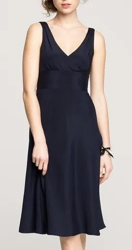 Excellent preowned condition, no flaws. J. Crew navy blue sleeveless midi dress designed with a fl... Show more