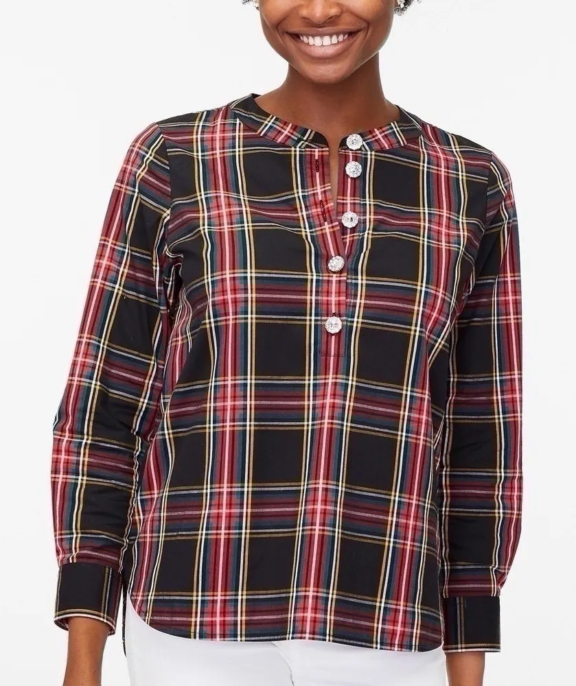 J.Crew Factory Tartan Cotton Poplin Jewel Buttons Shirt Top