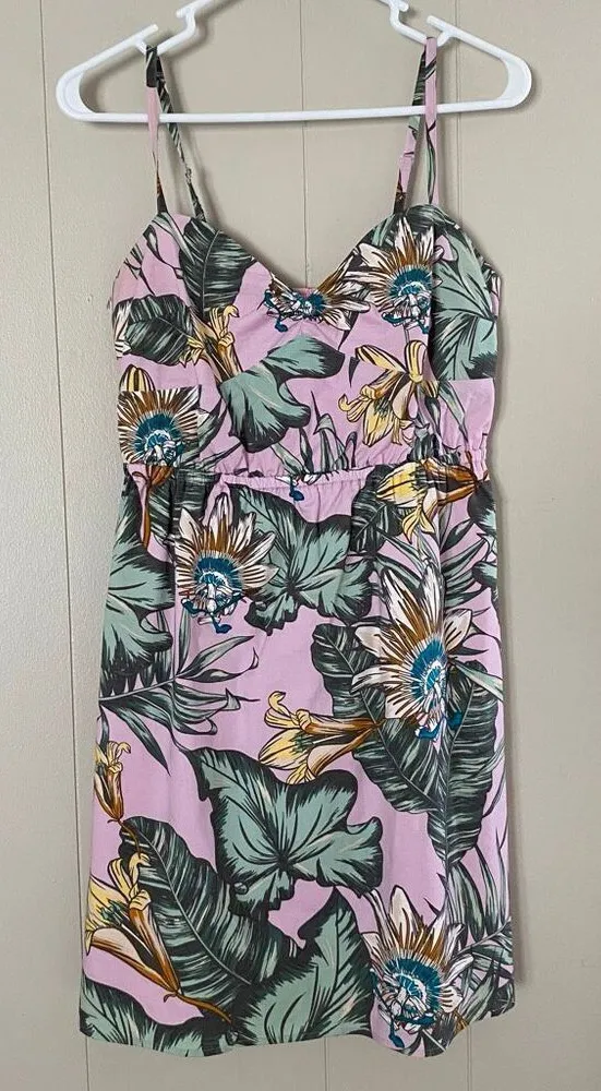 Gorgeous J.Crew tropical floral sundress in a beautiful pink base with green, blue, and yellow flora... Show more
