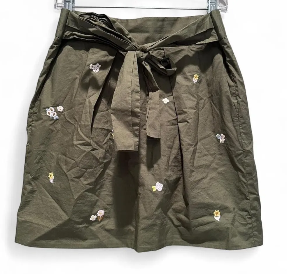 j.crew green floral paperbag mini skirt size 8 really good, pre owned condition. 100% cotton. lined... Show more