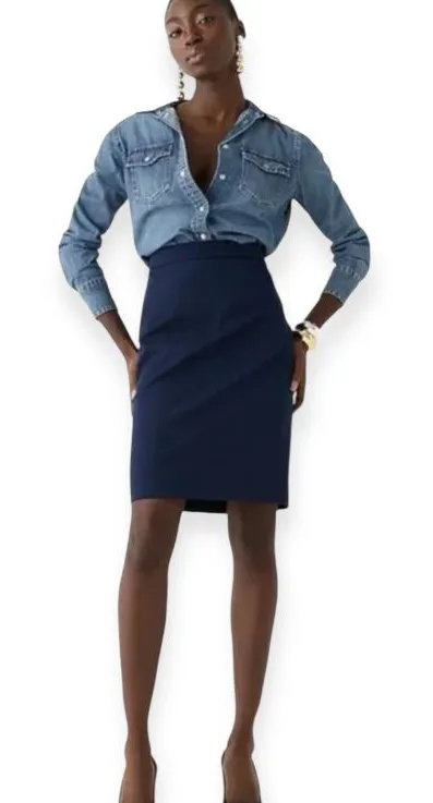 Elegant navy pencil skirt. Perfect for office or evening. Timeless and versatile.