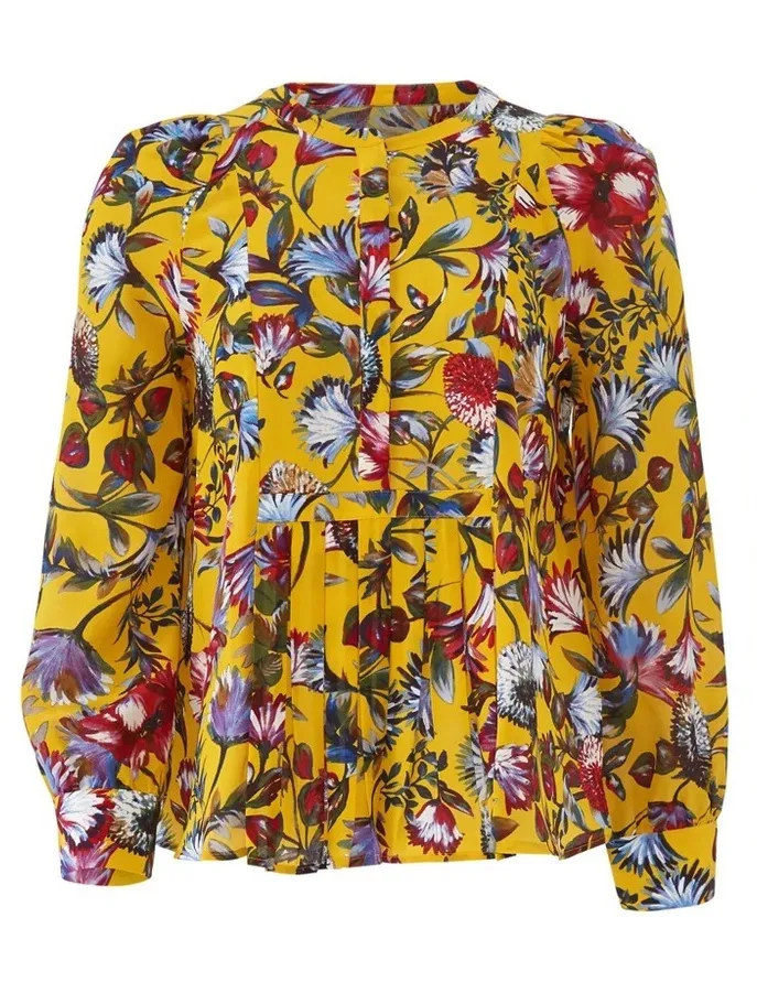 PTP 18in The J Crew K1822 XS Autumn Color 100% Silk Pleated Popover Top in Gold Floral Print is a l... Show more