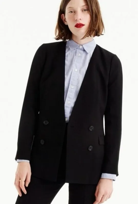 Always chic and classic navy blue collarless blazer. Excellent condition. *Size 2, approx: -18" arm... Show more