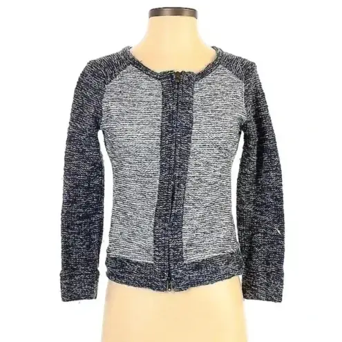 J. Crew Boucle Jacket Cardigan Indigo Blue Grey Color Block XS X-Small 0 2 Zip cardigan by J.Crew... Show more