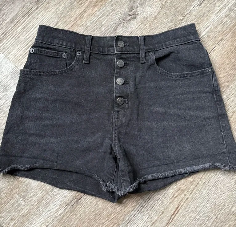 J. Crew Button Fly Denim Shorts Cotton High Rise Black Frayed Size 27 28 29 - $45 - From Bri