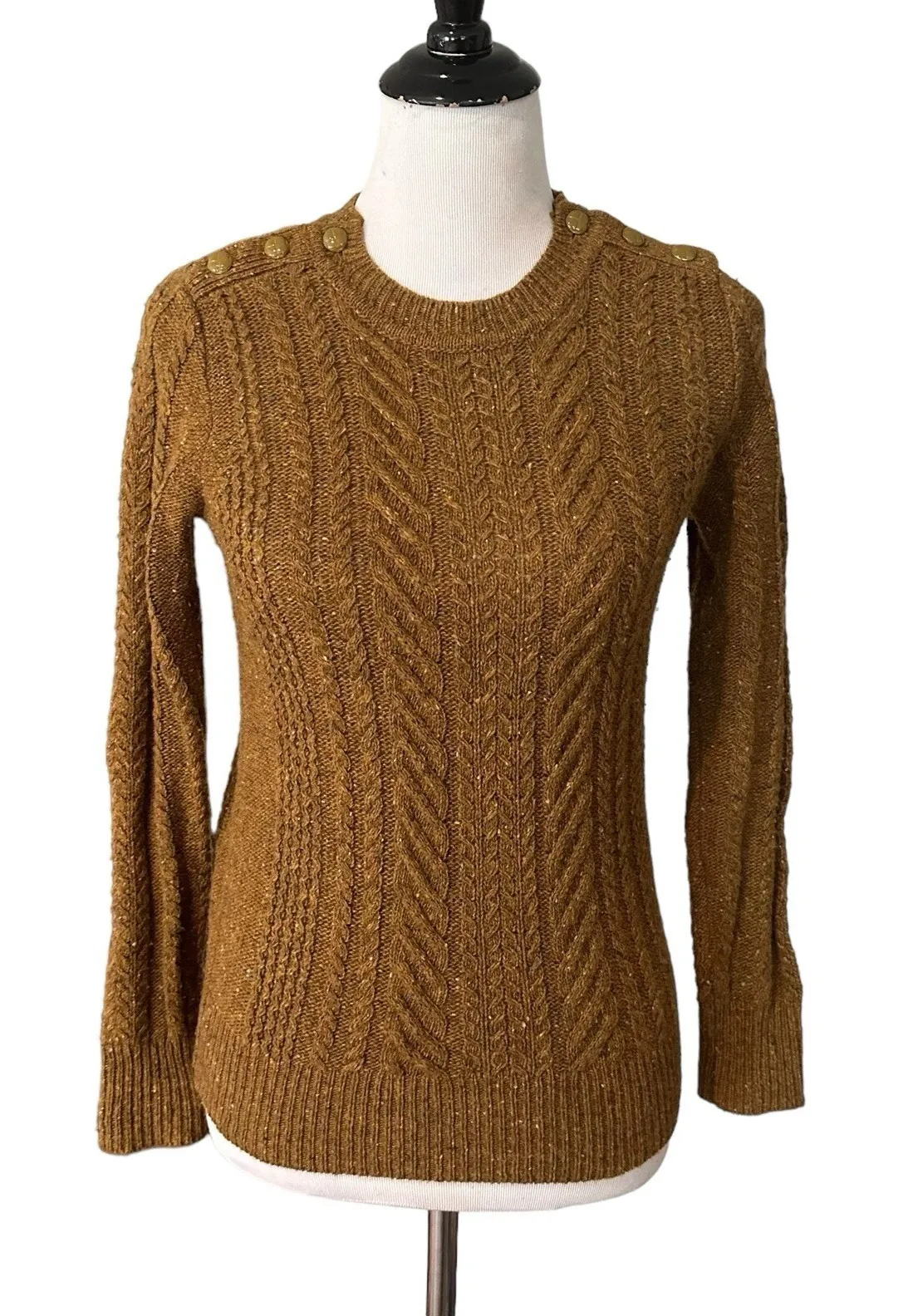 J Crew Cable Knit Sweater Women XXS Speckled Lambswool Blend Cozy Knit Cabincore Academia Pre Own... Show more