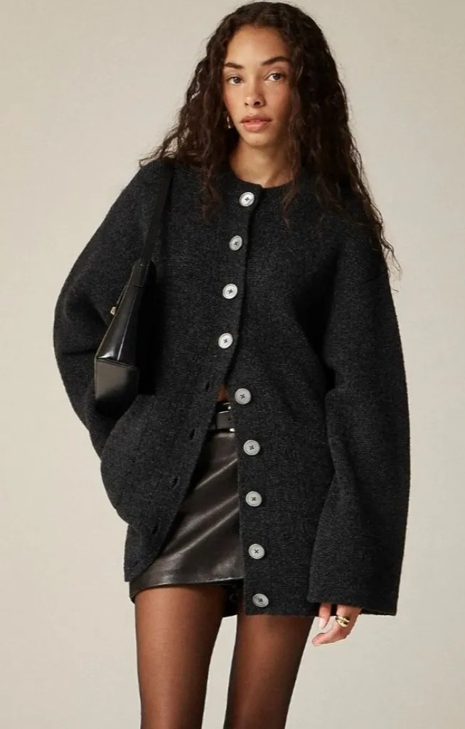 J. Crew Charcoal Gray Relaxed Milano Stitch Cardigan Sweater Jacket Size: XL Somewhere between a... Show more