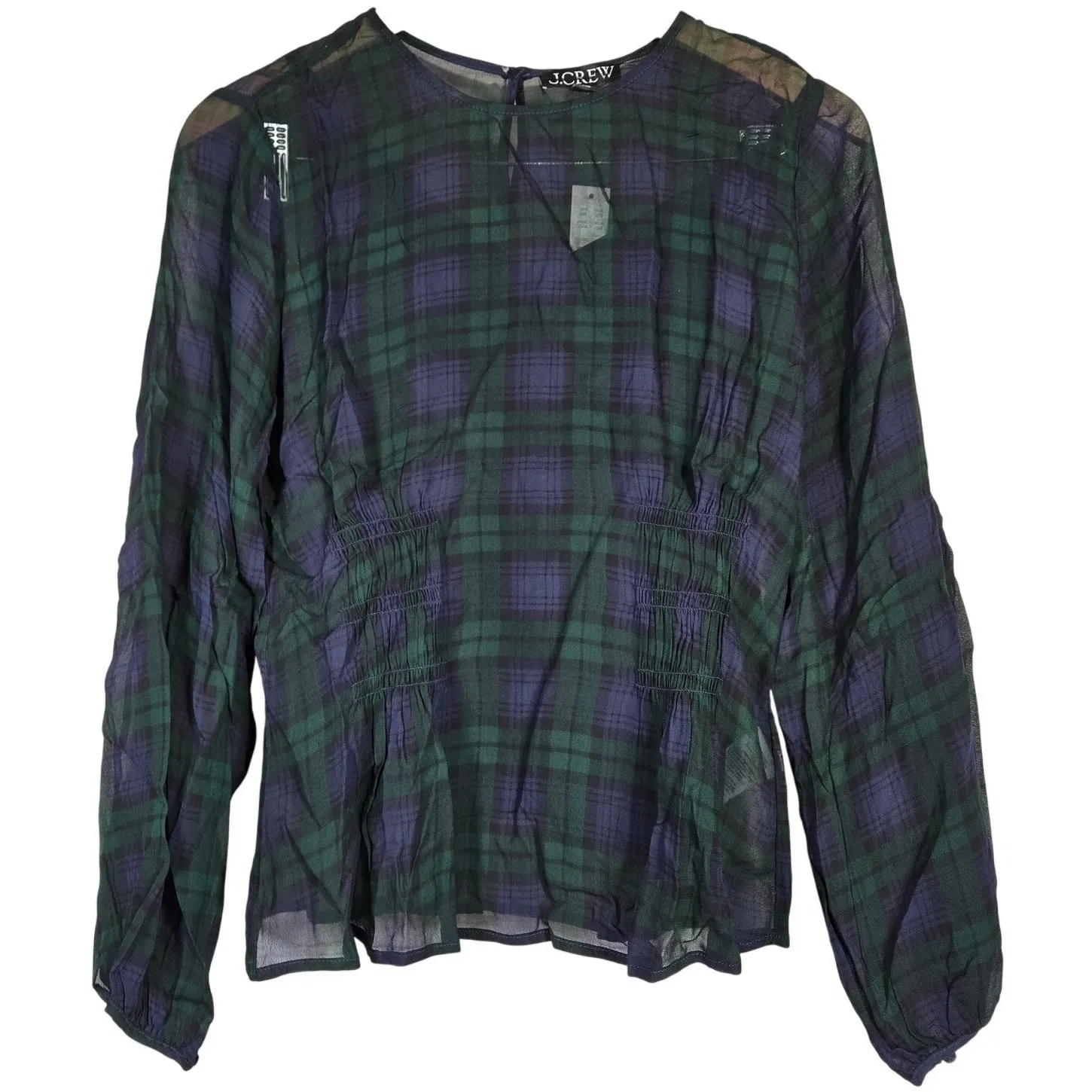 J. Crew Chiffon shirred-waist top in Black Watch tartan Cooper Green Blue 6 NWT New with tags. Tag... Show more