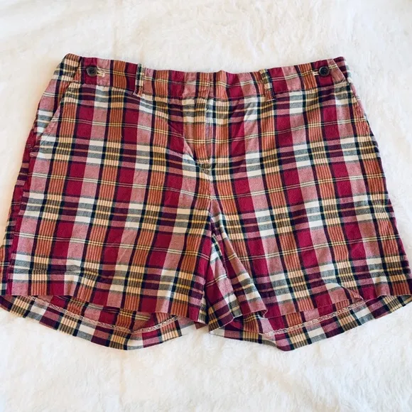 J.Crew Factory City Fit Red & Yellow Madras Plaid Shorts. Size 6 Excellent condition! These cute sho... Show more