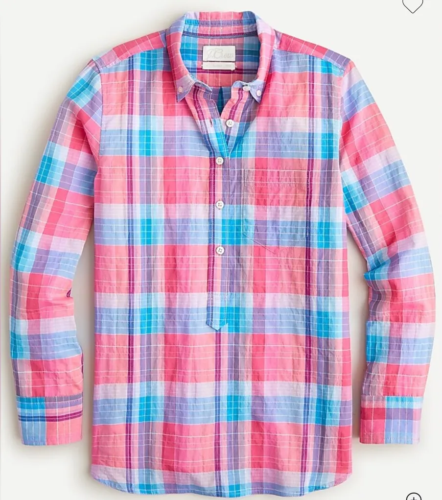 Brand NEW with tags NWT J. CREW Classic-Fit Crinkle Cotton Popover Shirt in Ombré Plaid Women’s 4. C... Show more