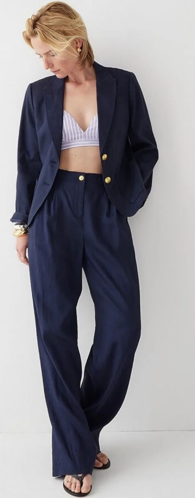 J. Crew Collection Marie Marot Wide-Leg Pant Italian Line Blend in Navy Blue. Style BR785 Collabor... Show more