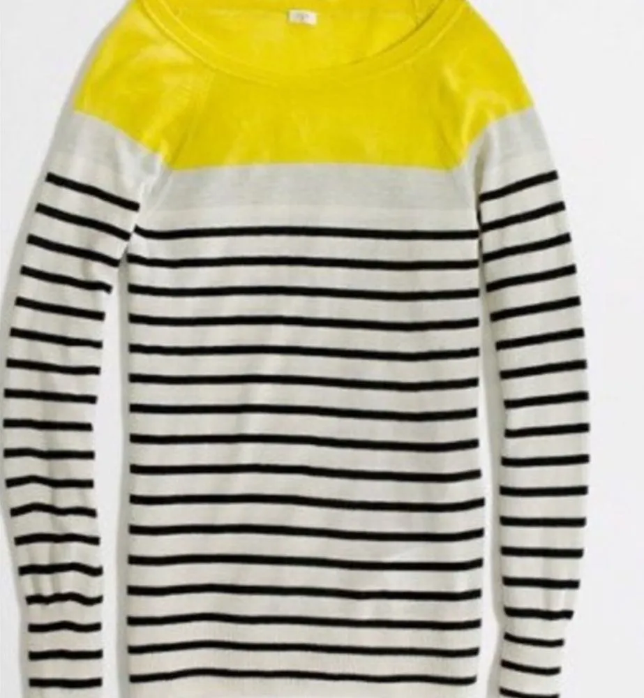 Lightweight, luxe, and perfect for year-round wear, this J.Crew summerweight cashmere sweater features a classic boatneck neckline and timeless colorblock stripes in yellow, black, gray, and off-white. Crafted from 100% cashmere, it offers a soft, breathable feel that’s ideal for cool summer evenings or easy layering in transitional seasons. A polished yet relaxed essential that pairs effortlessly with denim, trousers, or skirts.