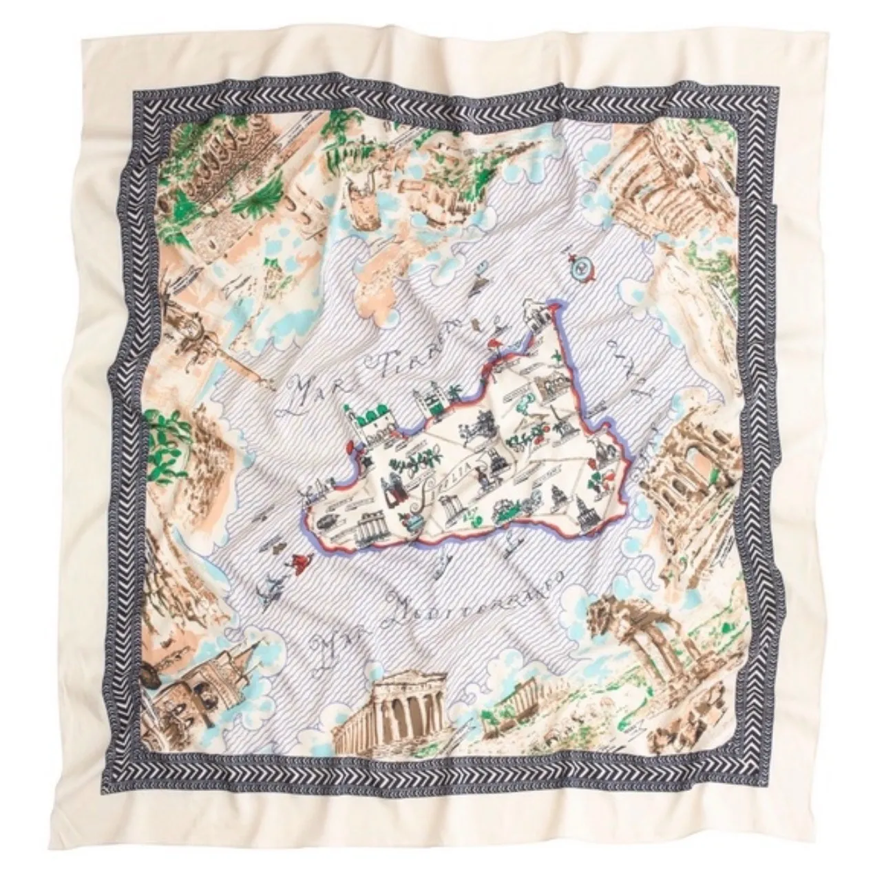 J Crew Cotton Blend Sicilia Scarf Map Print Italy Mediterranean Travel Square Good preowned conditi... Show more