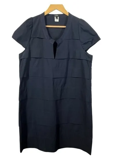 All orders ship next business day! J. Crew Cotton Poplin Tiered Navy Blue Shift Dress, cap sleeves,... Show more