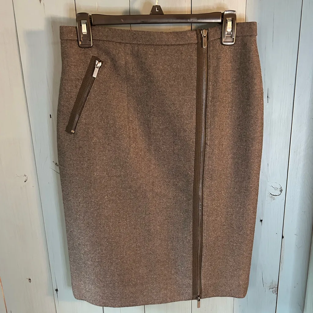 Chic dark grey & back pencil skirt with stylish zipper accents. Perfect for versatile styling. Pre-O... Show more