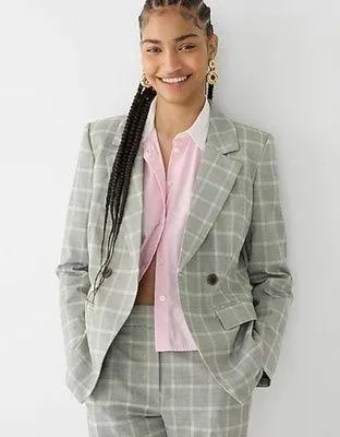 New with tags J. Crew Devon Plaid Blazer Grey, white, teal plaid Italian Stretch Wool in Tollegno... Show more