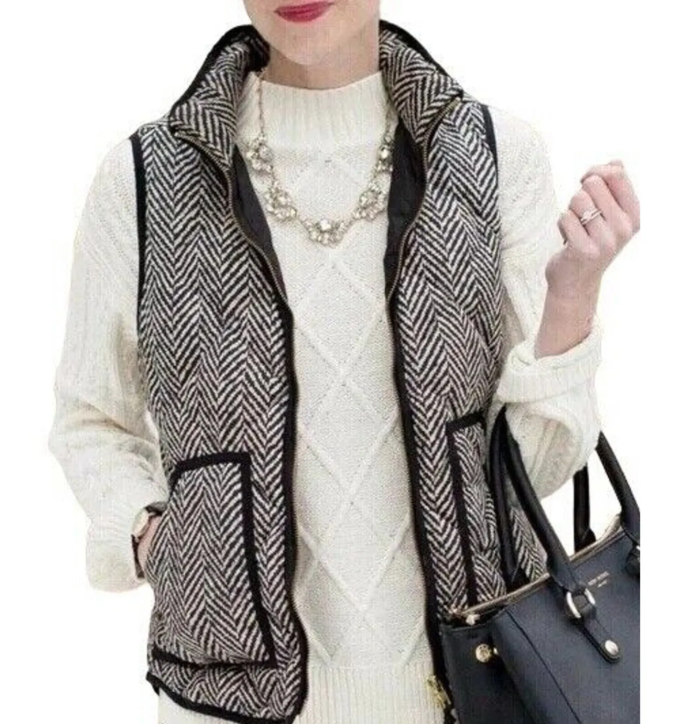 Excellent pre owned condition Full zip closure Standing collar Sleeveless Hits at hip Patch pockets... Show more