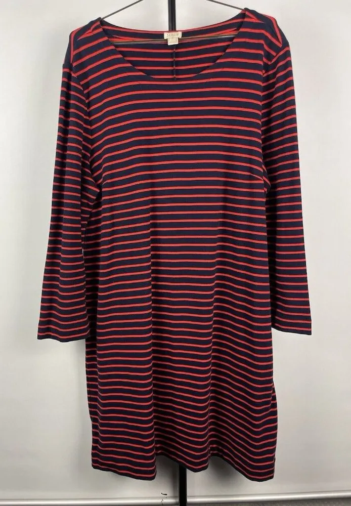 J. Crew Factory Red Blue Stripe Maritime Nautical Long Sleeve Dress Size XL Nice used condition M... Show more