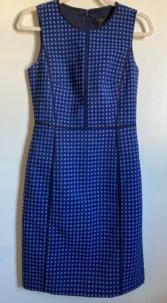 J. Crew Blue Foulard Print Geometric Medallion Paneled Sheath Dress Like New Condition Scoop Neck... Show more